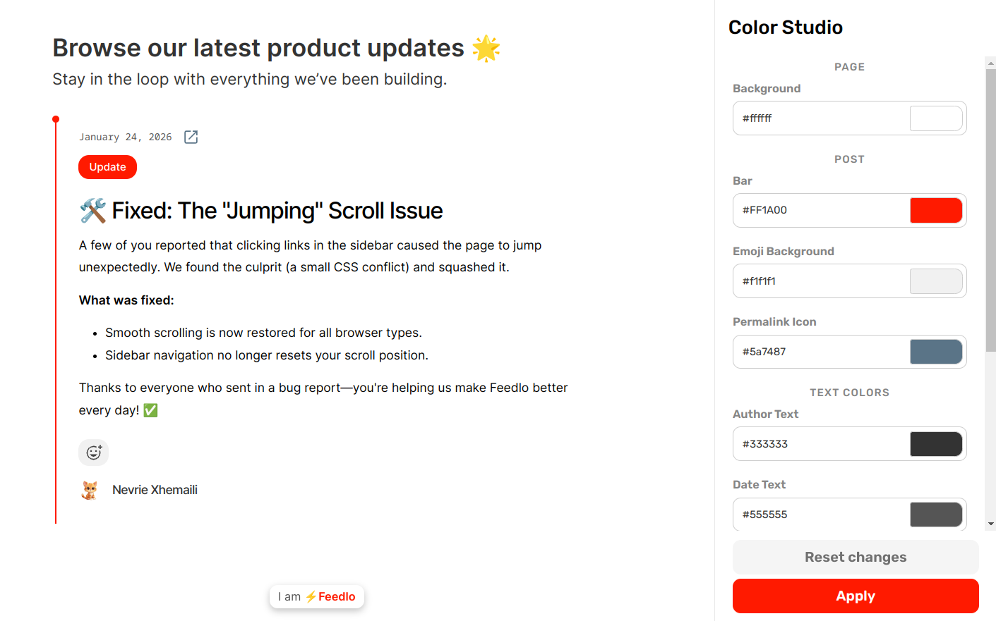 By combining the Color Studio and Font Studio, you can create a changelog that is uniquely yours. ๐