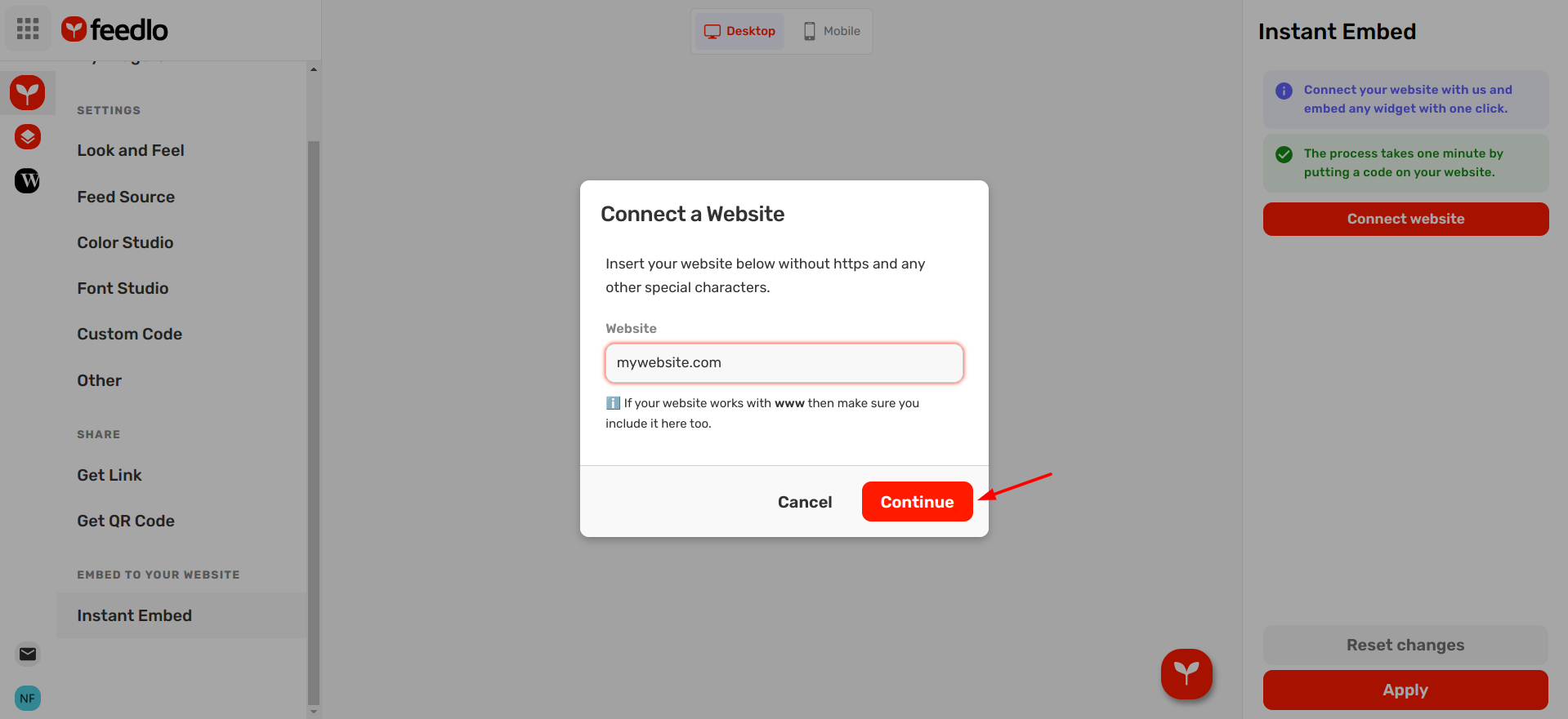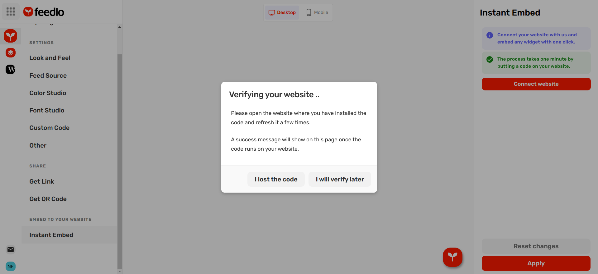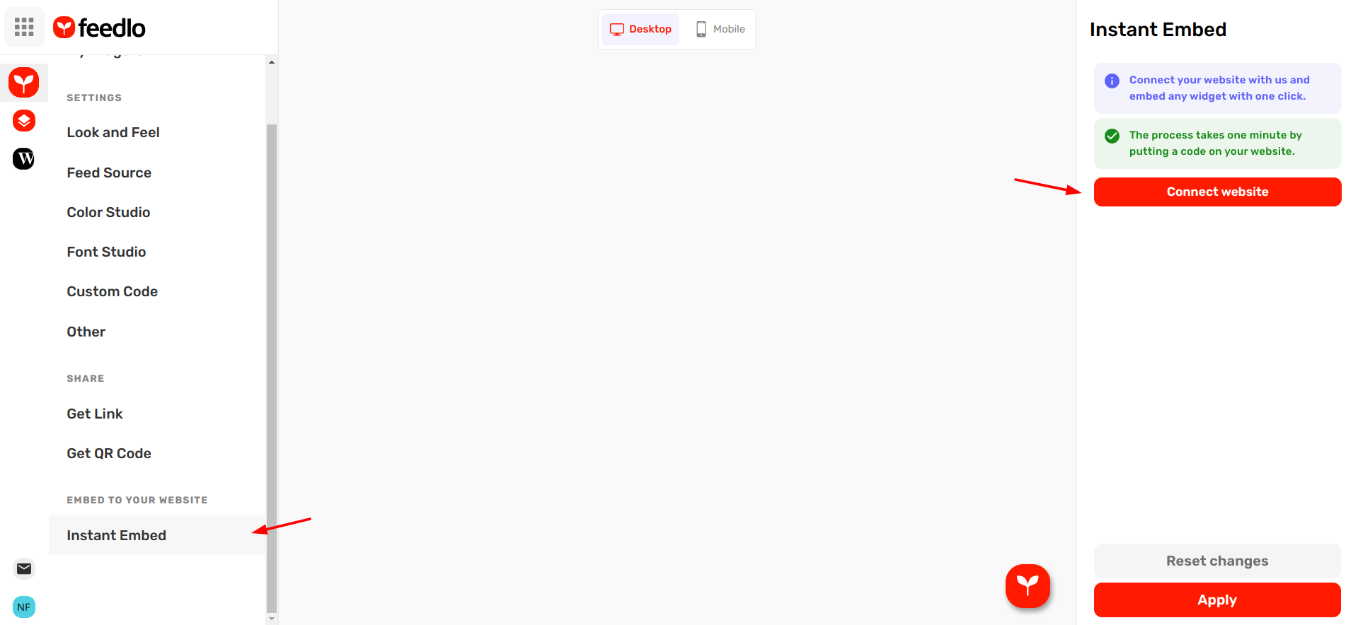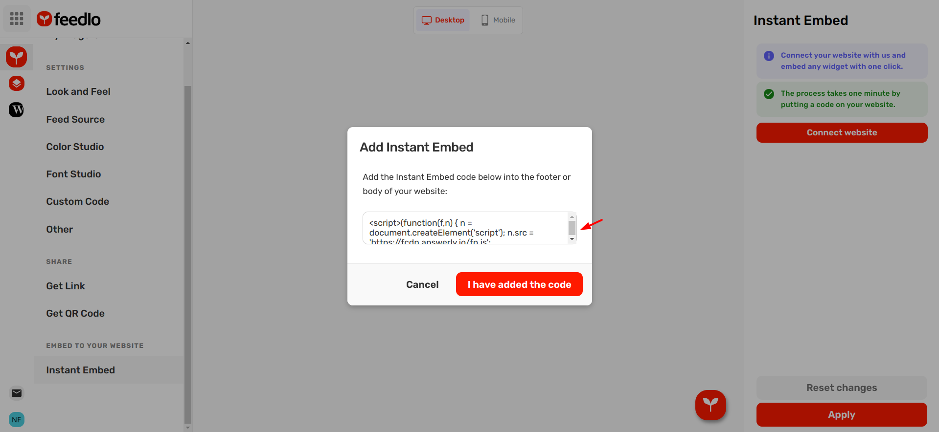 Embedding Feedlo on your website is super easy using our Instant Embed feature.