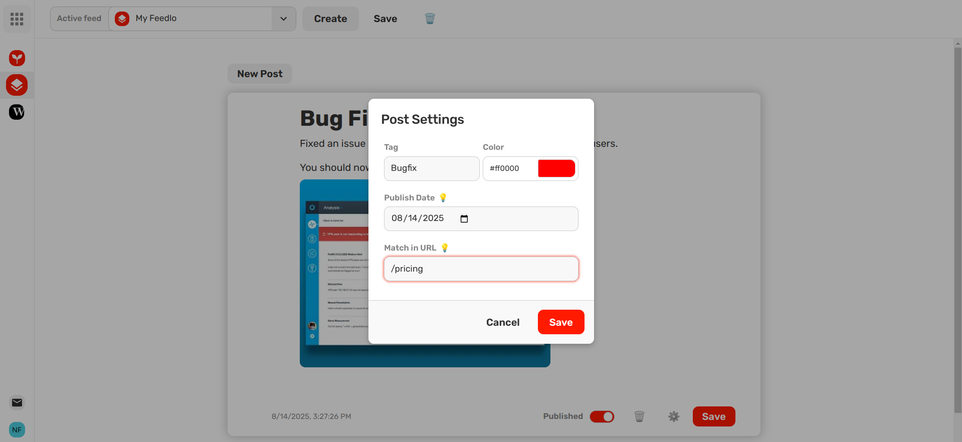 Organizing your Feedlo posts helps your users quickly understand updates and ensures your changelog stays clean and professional. Two powerful features for this are Tags and Match in URL.